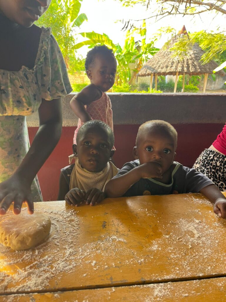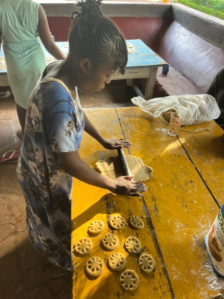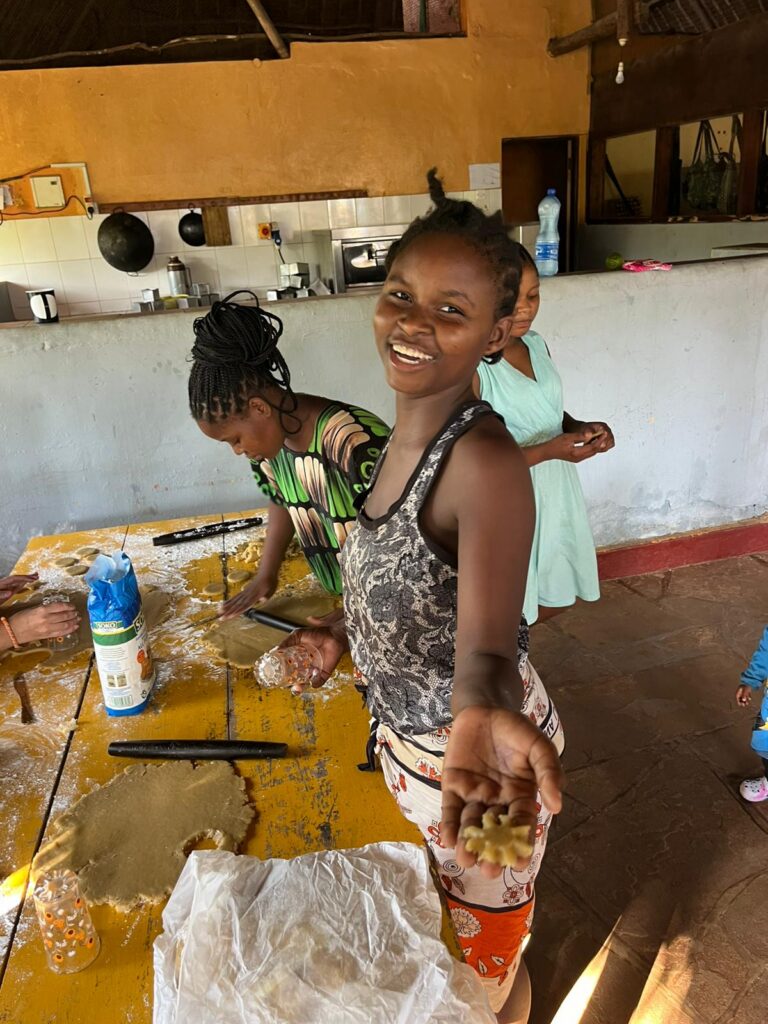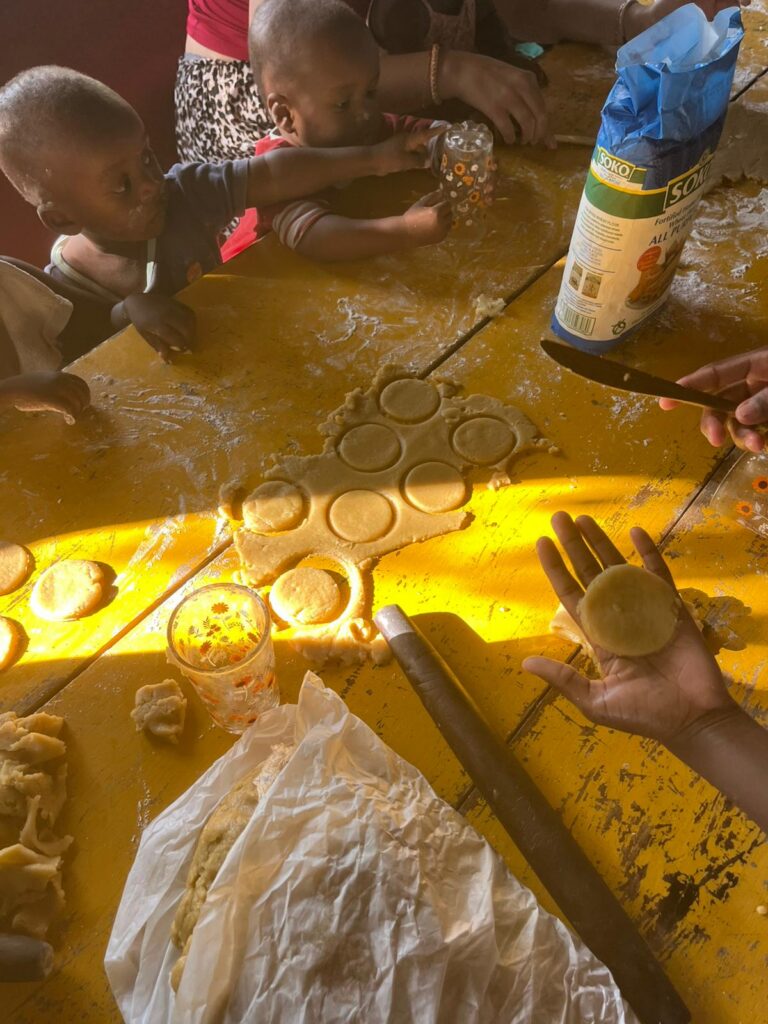 Es wurde gebacken im Africachild Village. Unter Anleitung unserer deutschen Praktikantinnen lernten unsere jungen Mütter das Backen von Plätzchen kennen. Natürlich durften auch die jüngsten mithelfen.