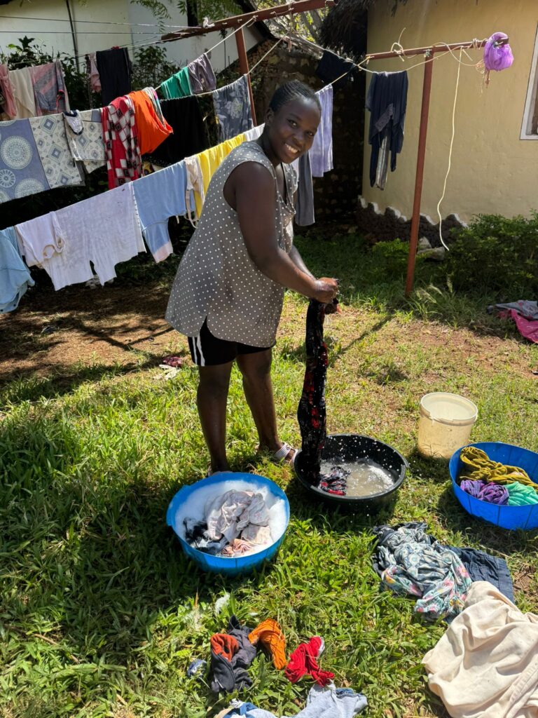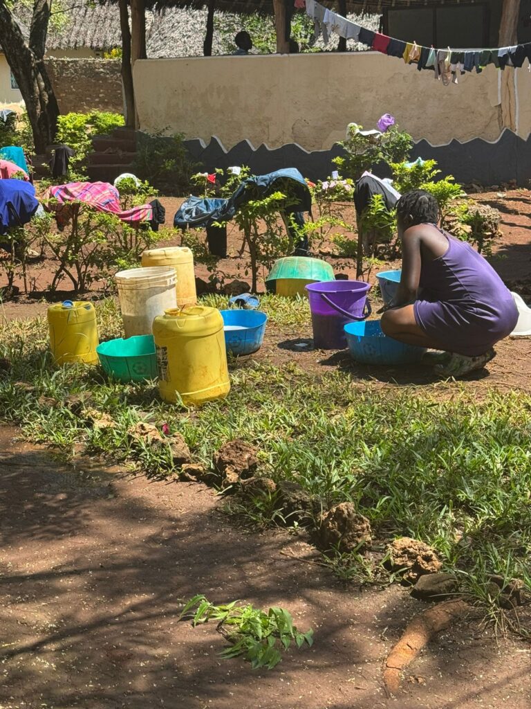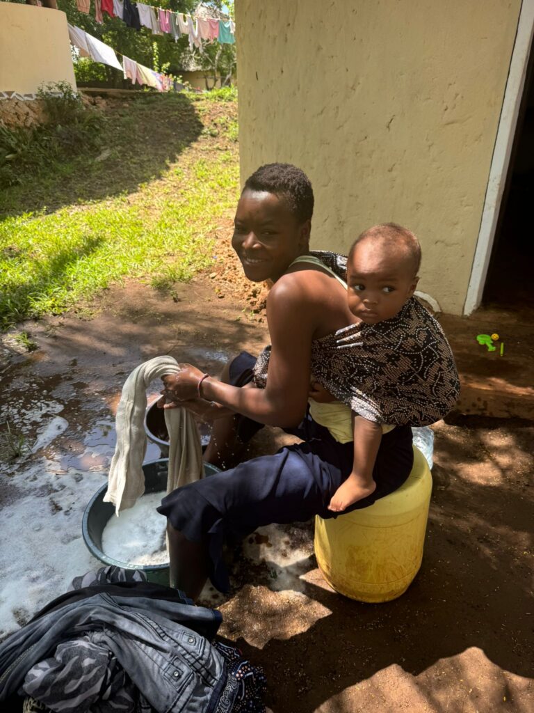Unsere jungen Mütter organisieren sich selbst und übernehmen verschiedene Aufgaben rund ums Village. Heute heißt es: Ärmel hochkrempeln und ran an die Wäsche 👕👗🍼. Gewaschen wird ganz traditionell – mit Seife, Bürste und fleißigen Händen 🫧